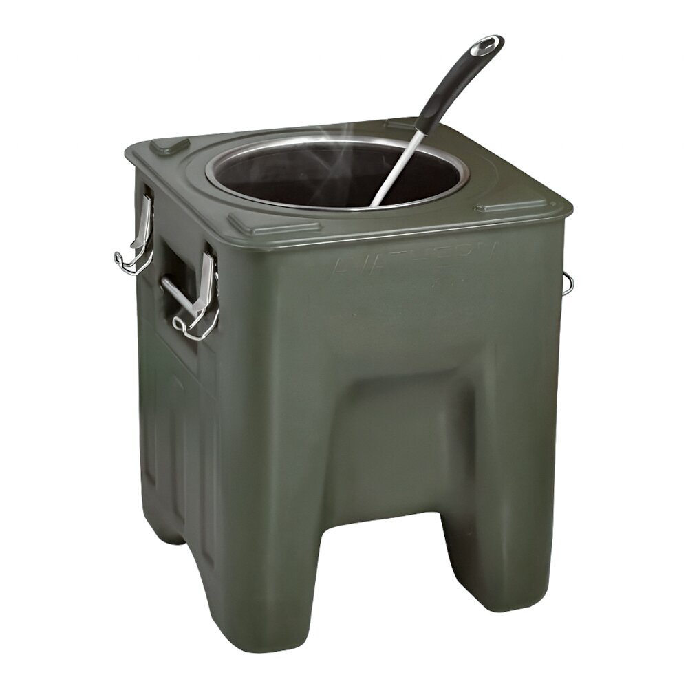 Термобокс для перших страв AVATHERM призначений для транспортування рідин на підприємствах громадського харчування. Модель оснащена краном, кришкою з силіконовим ущільненням та 4 натяжними вушками. Корпус та подвійна стінка виконані з харчового поліпропілену, шар ізоляції із спіненого поліуретану без вмісту фреону, а внутрішня ємність зроблена з нержавіючої сталі.