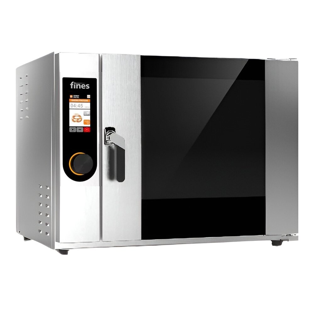 Конвекційні печі використовуються для різноманітних завдань у галузі приготування їжі. Основні переваги конвекційних печей полягають в тому, що вони використовують принцип конвекції - циркуляцію гарячого повітря, щоб рівномірно прогрівати та готувати їжу. FINES HTB-5 працює в режимах конвекції та пароконвекції. Максимальна температура нагрівання робочої зони до 260°С. Є функція попереднього нагріву.