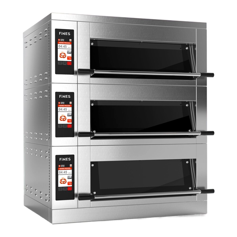 Ця модель подової печі Fines FD64H2/3-S Smart призначена для випікання хлібобулочних та кондитерських виробів на підприємствах харчової промисловості, громадського харчування та торгівлі. Вона оснащена парогенератором з можливістю автономного або ручного нагрівання.