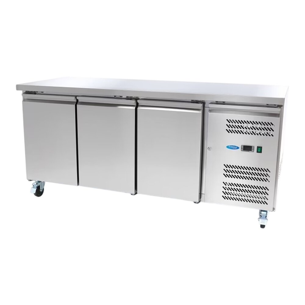 На будь-якій професійній кухні потрібна надійна морозильна камера для зберігання продуктів у замороженому стані. Морозильний стіл поєднує одразу дві функції: всередині зберігаються заморожені овочі, м’ясо, риба та десерти, а міцна стільниця з нержавіючої сталі може використовуватися як робоча поверхня для приготування страв. Це ідеальне рішення для кухонь з обмеженим простором.