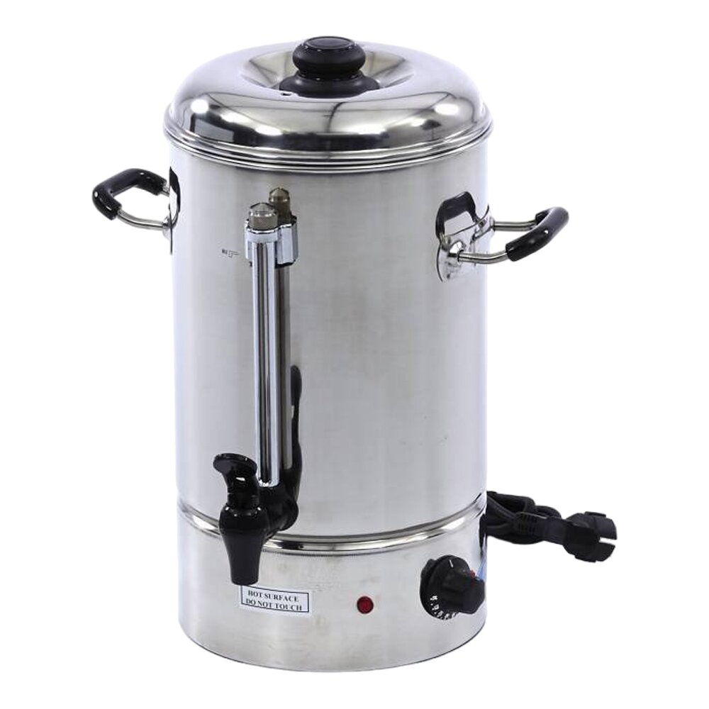 Зручний диспенсер для гарячої води ідеально підходить для приготування великої кількості гарячих напоїв, таких як чай, кава глінтвейн, для великих груп людей. Він може вмістити до 10 літрів води і підтримувати її ідеальну температуру, щоб вона була готова до використання за потреби. Таким чином, у вас завжди буде достатньо гарячої води, щоб негайно обслужити гостей. Це ідеальний кухонне обладнання для будь-якого закладу громадського харчування або заходу. Кришка оснащена ручкою, щоб її було легко підняти, а оскільки вона виготовлена з пластику, вона не нагрівається. Завдяки зручним ізольованим боковим ручкам для перенесення диспенсера, його можна переносити, не обпікаючись. Закип'ятити воду можна за 20-30 хвилин, перш ніж вона стане гарячою настільки, щоб можна було заварювати ідеальний час.