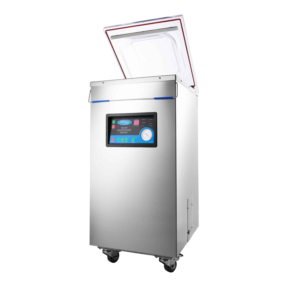 Вакуумна пакувальна машина з просторою камерою для пакування великої кількості продуктів є незамінним надбанням у кожному закладі громадського харчування. Ви не тільки запобігаєте утворенню відходів, але й можете довше зберігати продукти. Ще однією перевагою використання цієї професійної пакувальної машини є економія місця у вашому холодильнику або морозильній камері. Компактні вакуумні пакети займають менше місця, ніж інші варіанти зберігання, такі як пластикові коробки або контейнери GN. Оскільки з пакета видаляється повітря, він довше залишається свіжим. Ця підлогова модель має повністю автоматизований процес пакування.