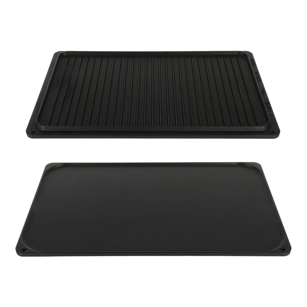 За допомогою багатофункціонального листа для грилю та випікання Rational (325x530 мм) Ви отримаєте діагонально орієнтований візерунок гриля на м’ясних продуктах швидкого обсмаження, рибі та овочах. Бортик по периметрі з тильної сторони ідеально підходить для смаження продуктів з сильним виходом жиру або рідини (наприклад, шинки). Лист для грилю та випікання є дуже міцним та тривким. Антипригарне покриття TriLax сприяє підрум’янюванню та найкраще всього підходить для роботи при температурах до 300 °C.