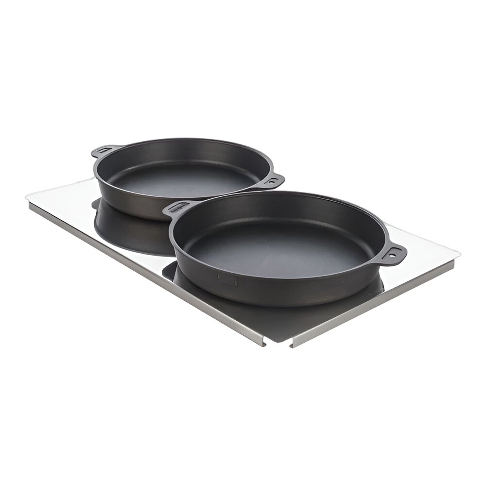 За допомогою ємності для смаження та випікання Rational (? 25 см) можна готувати безліч типових для приготування на сковороді страв, наприклад, тортилья, паелья, швейцарські рестлі, відкриті пироги кіш, млинці, а також маленькі пиці, пироги тощо всього за декілька хвилин. Хвилясте дно забезпечує рівномірне підрум’янювання, а протипригарне покриття TriLax дозволяє запобігти пригорянню продуктів. Завдяки тримачеві можна просто та безпечно виконувати операції при великій кількості завантажуваних порцій