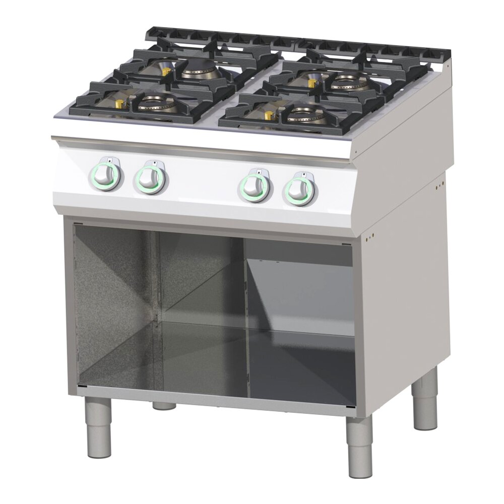 У складі плити розміщені пальники: 3х 6 кВт, 1х 3,5 кВт, що забезпечує швидке та ефективне приготування будь-яких страв.