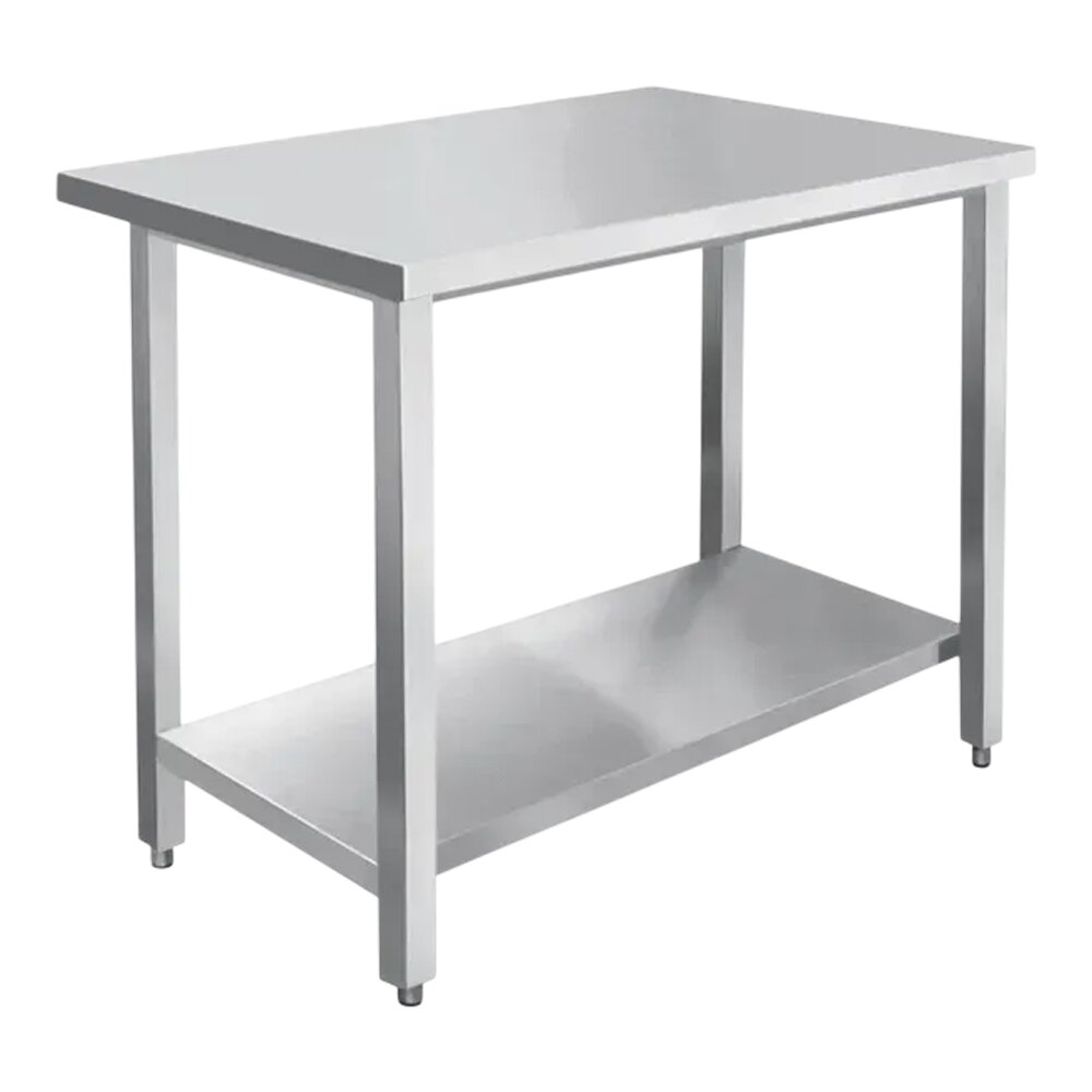 Професійний виробничий стіл з нижньою полицею для зберігання кухонного інвентарю. Призначений для підготовчих і допоміжних робіт у закладах громадського харчування.