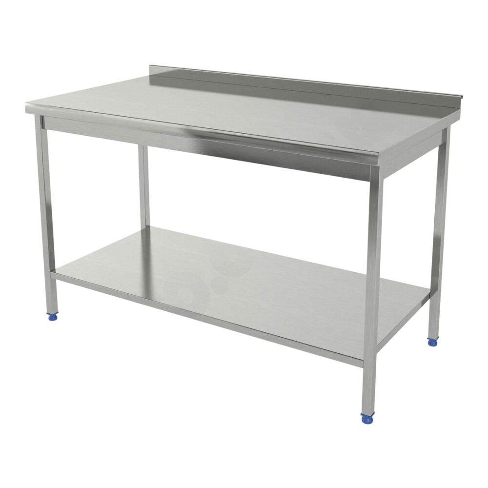 Професійний стіл з бортиком і полицею для використання у підготовчих та допоміжних зонах.