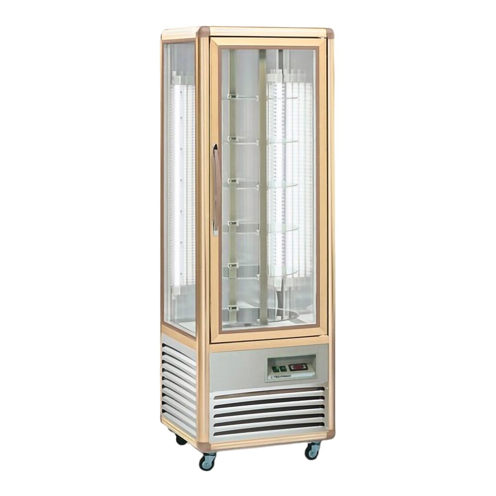 Вітрина холодильна Tecfrigo Snelle 350 R призначена для зберігання та демонстрації тістечок, тортів та інших кондитерських виробів у їдальнях, ресторанах, кафе, у виробничих цехах. Сучасна висока кондитерська вітрина з 6 ефектними скляними поличками, що обертаються. Ця мобільна вітрина підтримує рівномірну температуру за допомогою примусового охолодження, щоб ваші продукти зберігали найкращу якість. Ця квадратна холодильна вітрина має місткість 350 літрів.