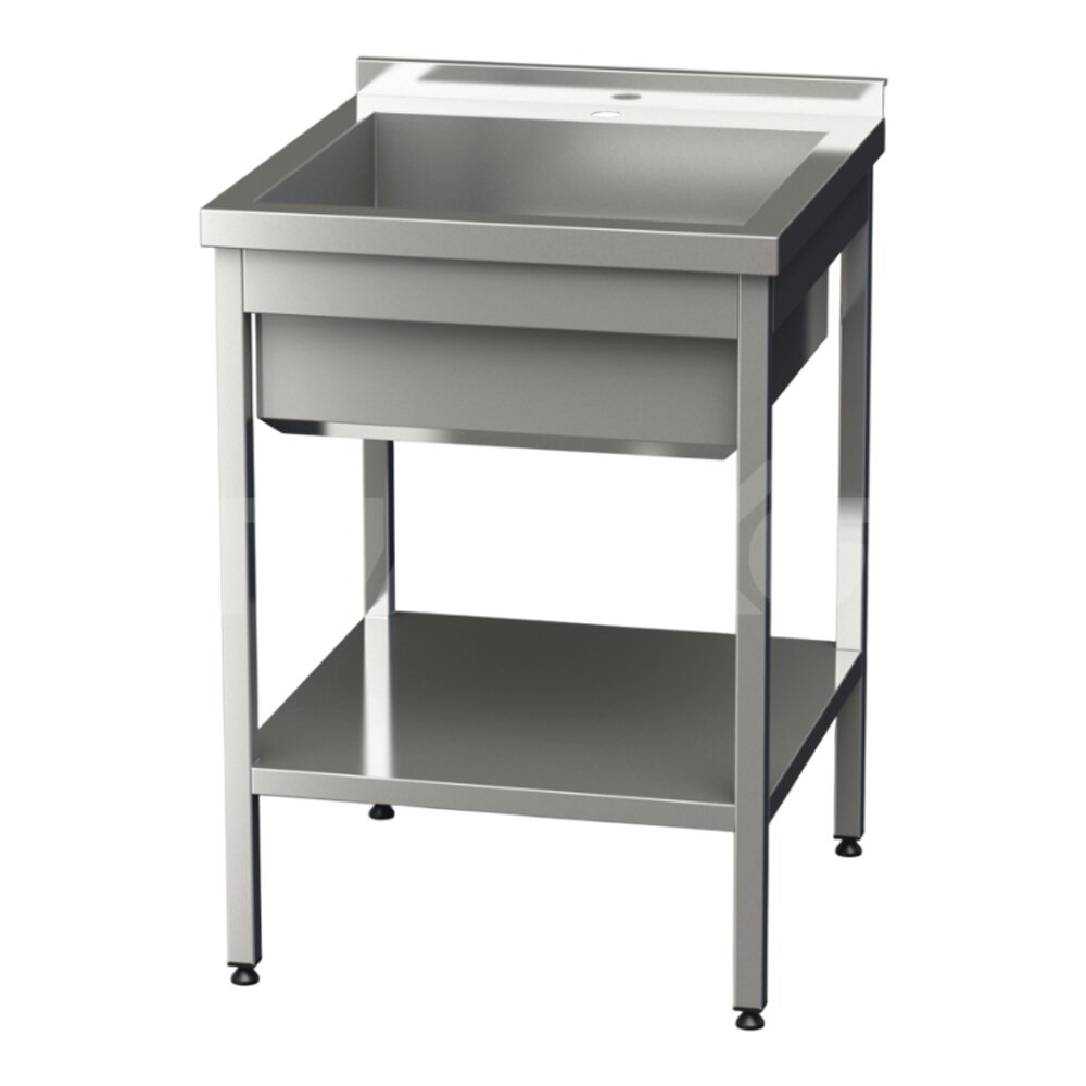 Ванна мийна 1-секційна з бортом і полицею 600х600х850
