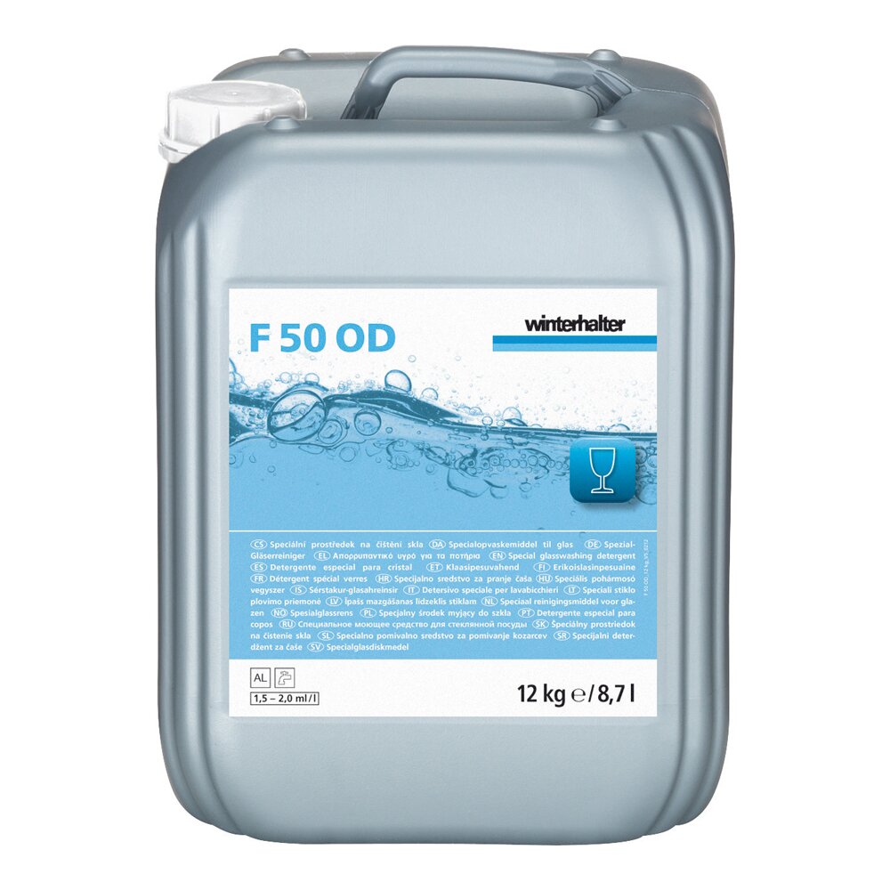 Миючий засіб Winterhalter F 50 OD, для скляного посуду. Рідкий, лужний очищувач для промислових посудомийних машин. Призначено для очистки скляного посуду без декору, та усунення неприємних запахів.