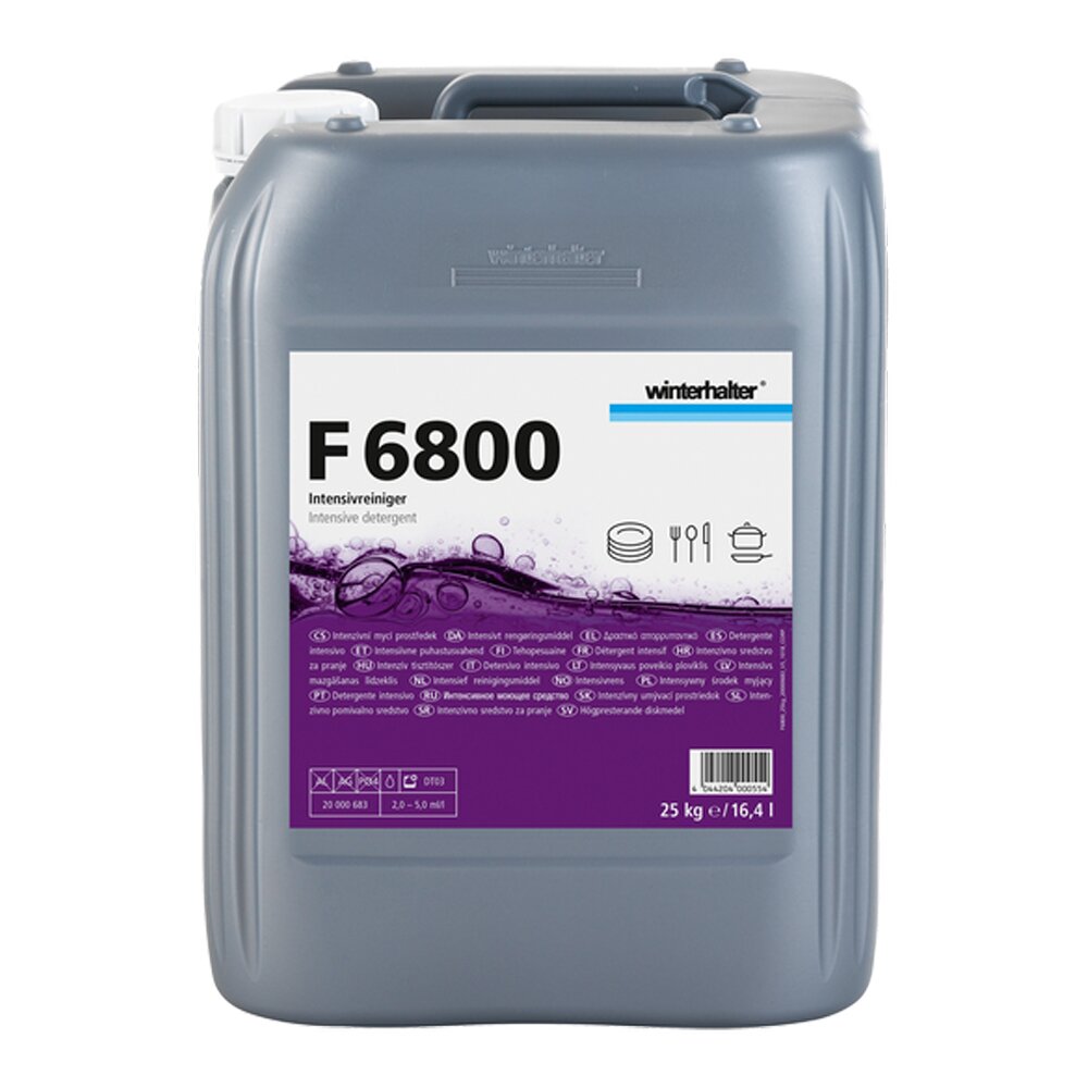 Миючий засіб Winterhalter F 6800, інтенсивний. Рідкий, високолужний засіб для чищення інтенсивних забруднень, призначений для комерційних посудомийних машин. Він ефективно видаляє частинки їжі з посуду, столових приладів та виробів із пластику та нержавіючої сталі. Крім того, F 6800 має дуже хорошу здатність розчинення жиру і надійно запобігає накопиченню нових жирових покриттів.