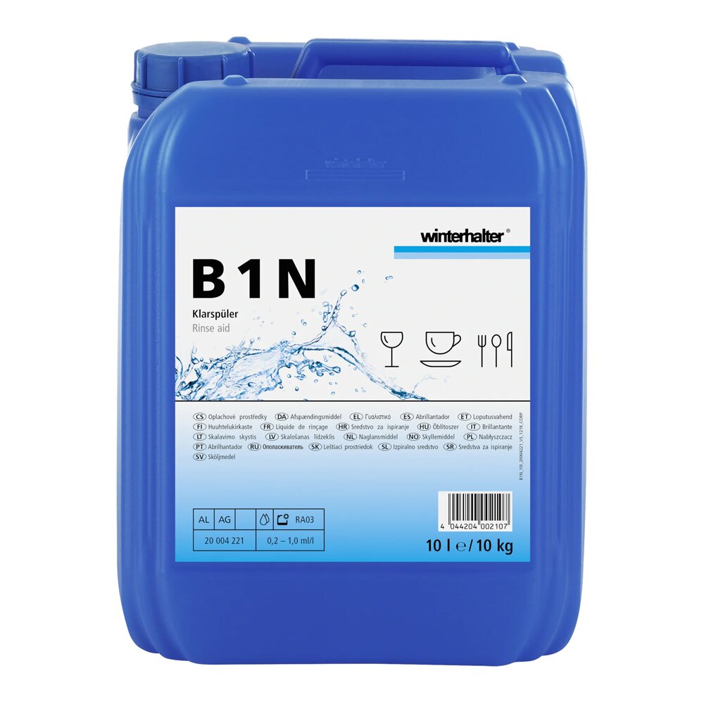 Ополіскувач Winterhalter B 1 N, нейтральний. Нейтралізує залишки миючого засобу та змивають розчинені залишки їжі. Спеціальні компоненти забезпечують швидке висихання посуду.